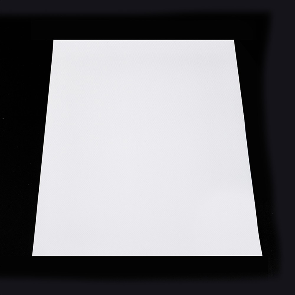 يتم نسج نسيج قاعدة البوليستر ثنائي المحور عالي الأداء بكثافة عالية تبلغ 28×28، ومركب بطبقة فيلم PVC سوداء غير لامعة. السطح مرن وناعم، في حين أن الجزء الخلفي خشن بسبب الجزيئات. سمكها وخاصية الحماية من الضوء أفضل بكثير من قماش المصباح التقليدي. تم تصميمه خصيصًا للطباعة الخارجية عالية الدقة، ويتميز بمقاومة ممتازة لضغط الرياح ومناسب لمشاريع الإعلان العملاقة المكشوفة طويلة الأمد.